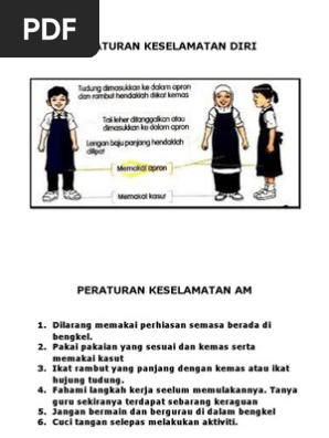Ini secara tidak langsung dapat. 1.3 keselamatan diri dan rakan. Diri sendiri merupakan individu yang melakukan kerja atau tugas. Keselamatan kerja adalah menjamin keadaan, keutuhan dan kesempurnaan, baik jasmaniah maupun rohaniah manusia serta hasil karya dan budayanya tertuju pada kesejahteraan masyarakat pada umumnya dan manusia pada khususnya. Peraturan dan etika punca ke kemalangan punca kebakaran pertolongan cemas. Bengkel mestilah sentiasa dalam keadaan bersih dan teratur. Fahami cara yang bertul untuk menggunakan sesuatu alatan dan bahan serta patuhi arahan guru. Untuk mengelakan kemalangan ketika berada di tempat kerja, beberapa peraturan hendaklah dipatuhi. Patuhi peraturan yang telah ditetapkan sepanjang masa. Elakkan memakai pakaian yang terlalu longgar dan aksesori yang labuh kerana ia mudah. Jangan bermain dan bergurau senda semasa berada di dalam bengkel. 7.2 persediaan sewaktu bekerja seperti pengetahuan tentang kerja,persekitaran. Keselamatan diri patuhi peraturan keselamatan sepanjang masa.