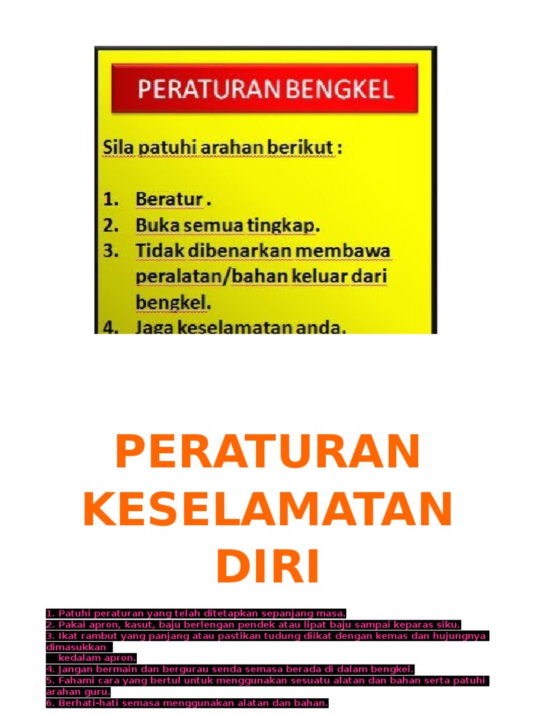Rbt tahun 4 keselamatan bengkel peraturan keselamatan diri bengkel peralatan dan bahan. Patuhi peraturan yang telah ditetapkan sepanjang masa. Peraturan dan etika punca ke kemalangan punca kebakaran pertolongan cemas. Alat pelindung diri (apd) di bengkel motor. Murid mesti mempersiapkan diri dengan.